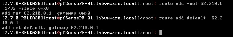 Cette commande permet d’ajouter la route par défaut à utiliser par votre Pfsense.