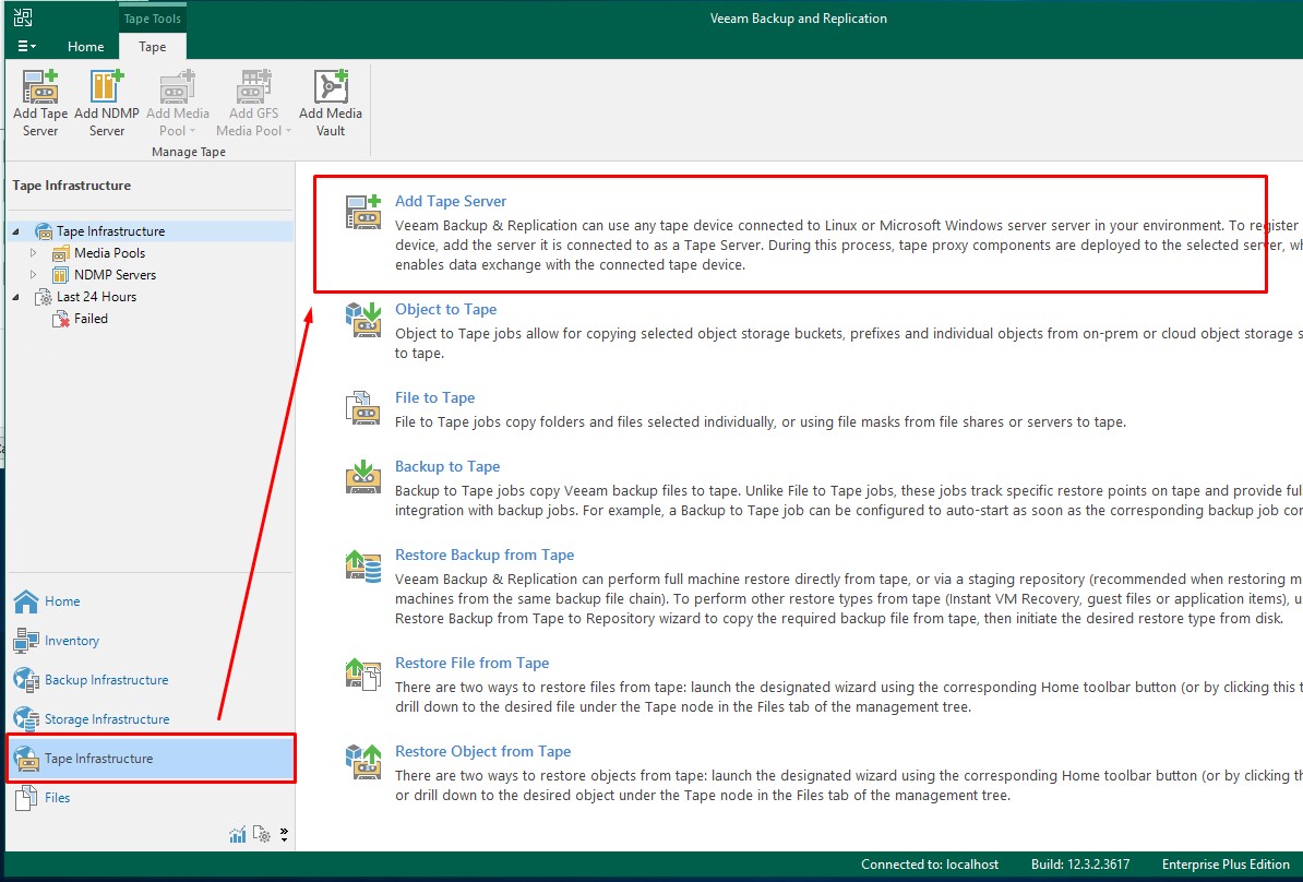 Puis rendez vous dans Tape Infrastructure puis Add Tape Server