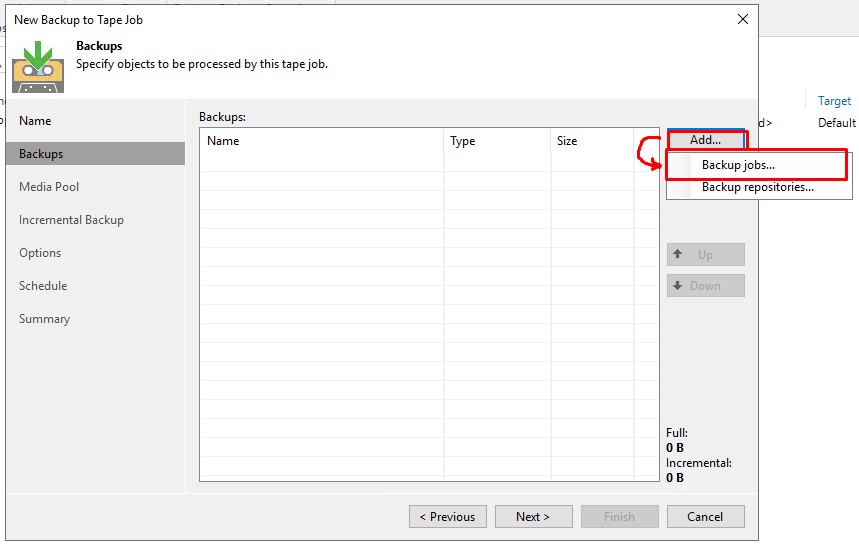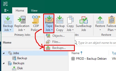 Dans votre console Veeam, cliquez sur Tape Job puis Backups…