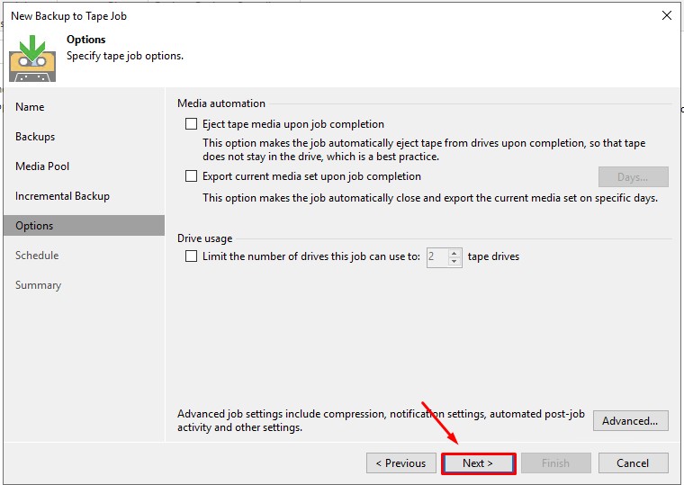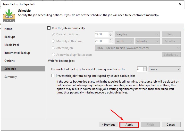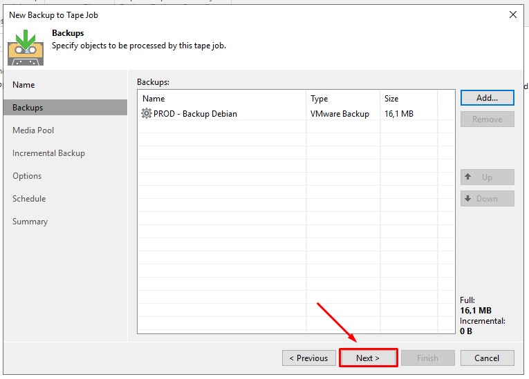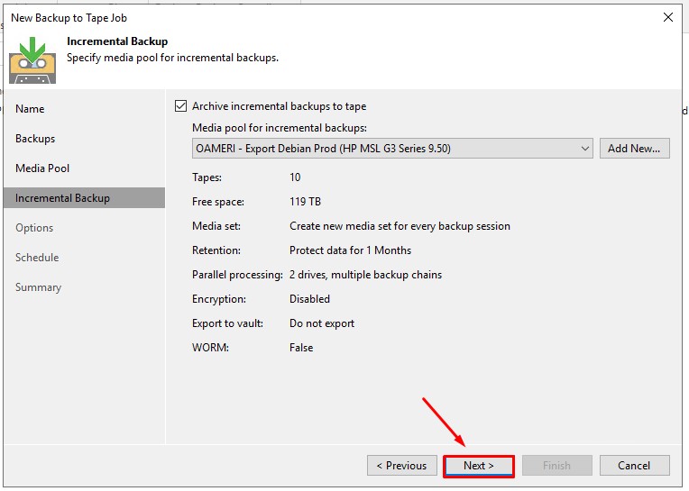 Cochez la case Archive incremental backups to tape si vous souhaitez également sauvegarder vos sauvegardes incrémentales.