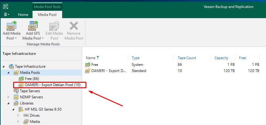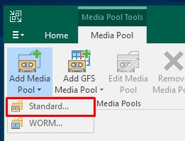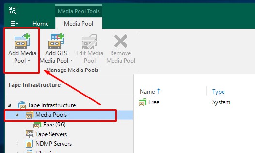 Rendez vous dans Tape Infrastructure puis Media Pools. Cliquez sur le bouton Add Media Pool.