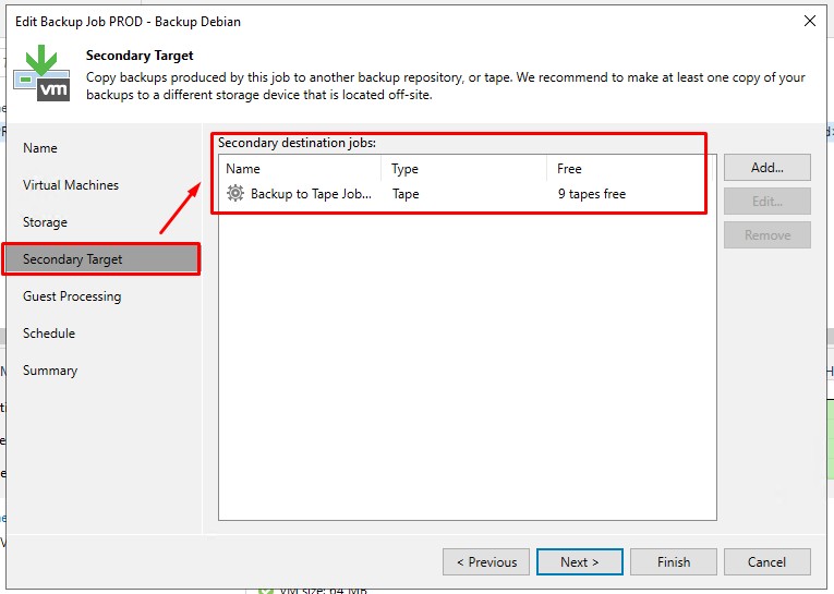 Ce dernier se base sur un backup job. En vous rendant dans ce dernier, regardez la partie Secondary Target :