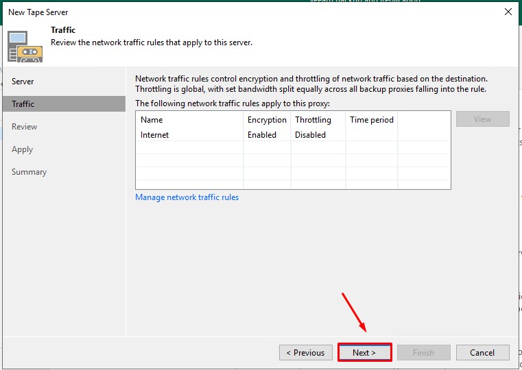 Je laisse cette partie par défaut. Il est possible de configurer des règles de trafic réseau. Cliquez sur Next >