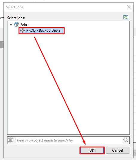 Sélectionnez votre job (ici PROD – Backup Debian) et OK