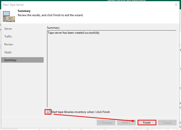 Cochez la case Start tape librairies inventory when I click Finish et cliquez sur Finish.