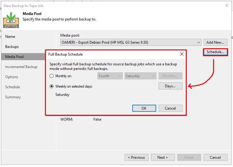 En cliquant sur Schedule…, vous avez la possibilité de définir exactement quelle Full Backup sera prise en compte.